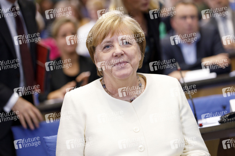 Angela Merkel bei der Verleihung des Staatspreises des Landes Nordrhein-Westfalen 2019 an Klaus Töpfer im WCCB. Bonn, 16.09.2019