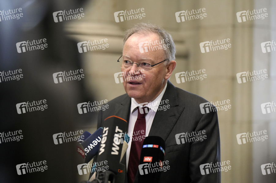 Stephan Weil bei einem Pressestatement am Rande der 1042. Sitzung des Bundesrates im Plenarsaal des Preußischen Herrenhauses. Berlin, 22.03.2024