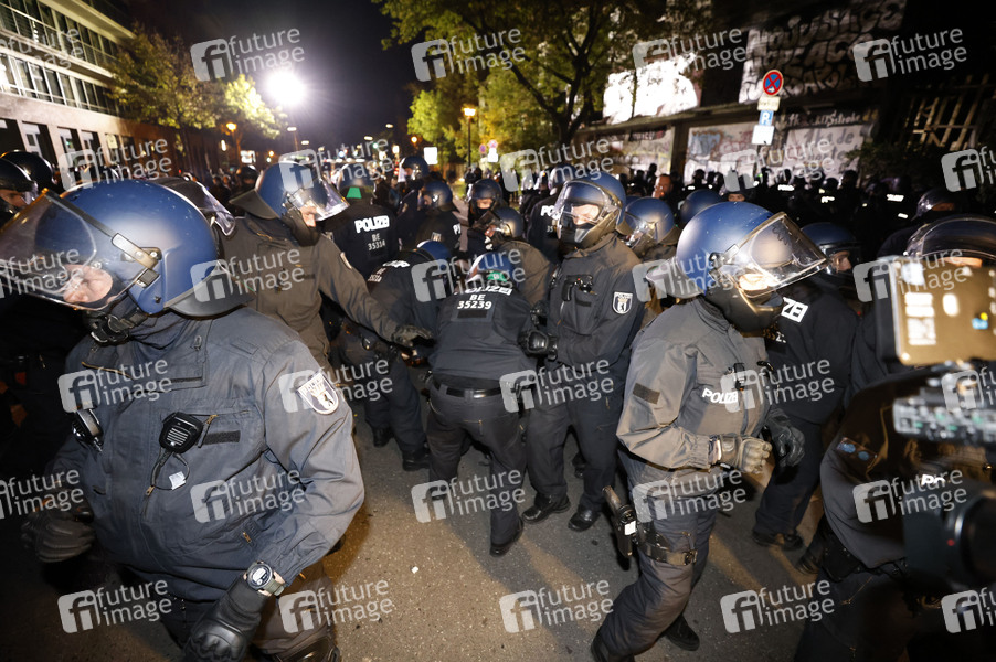 Køpi, Demo, Demonstration, Demonstranten, Protest, Erhalt, Räumung, Räumungsgefahr, Køpiplatz, Wagenburg, Vertreibung, Gentrifizierung, Gentrifikation, Yuppisierung, Strukturwandel, Linksautonome, Defend Köpi-Platz, Räumungstermin, Linkes Wohnprojekt, Linksautonome, Polizei, Polizisten, Polizeieinsatz
