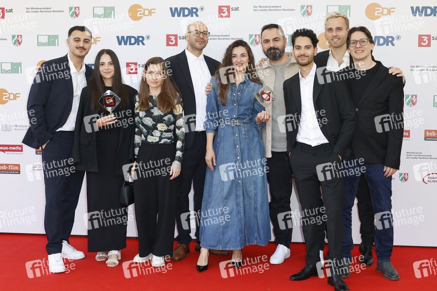 Bilal Bahadir und Cagdas Eren Yüksel mit dem Team von 'Uncivilized' bei der 61. Verleihung des Grimme Preises 2025 im Theater Marl. Marl, 04.04.2025