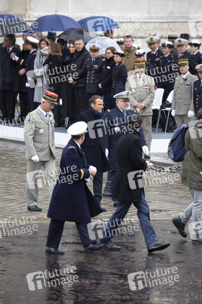 Politiker, Staatspräsident von Frankreich, La République en Marche, cérémonies du 101ème anniversaire de l’Armistice de 1918, Politik, Euroapolitik, Weltpolitik, Zeremonie, Feierlichkeiten, Feierlichkeit, Staatengemeinschaft, Internationale Organisationen, Verbündete, Militär, Soldaten