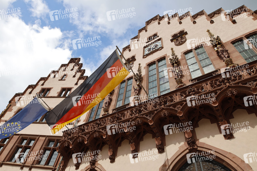 Rathaus, historisch, Hauptamt, Frankfurter Römer, Sitz der Stadtverwaltung Frankfurt, Beflaggung, Denkmal, Denkmalschutz, historisches Gebäude, altes Rathaus, Tourismus, Sightseeing