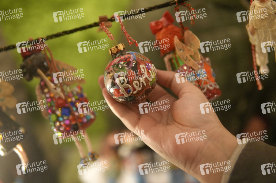 Berlin-Weihnachtskugel auf dem Alt-Rixdorfer Weihnachtsmarkt rund um den Neuköllner Richardplatz. Berlin, 08.12.2024