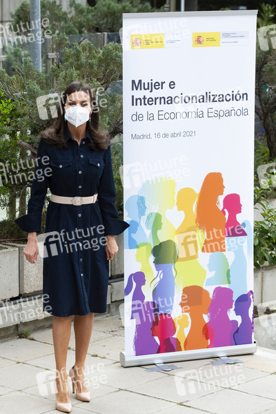 Königin Letizia von Spanien bei der Präsentation des Berichts der Arbeitsgruppe über die Rolle der Frau bei der Internationalisierung der spanischen Wirtschaft im Ministerium für Industrie und Wirtschaft. Madrid, 16.04.2021