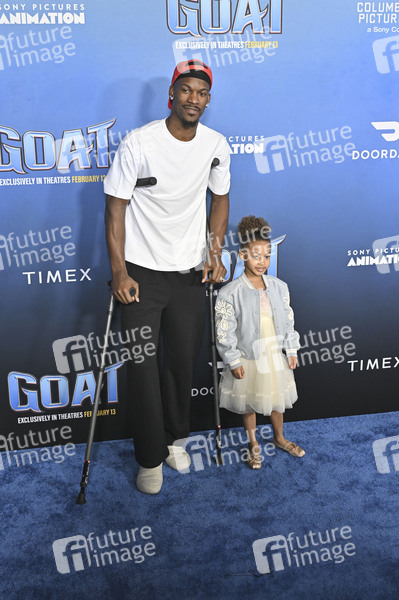 Jimmy Butler mit Tochter Rylee Butler bei der Premiere des Animationsfilms 'GOAT / G.O.A.T. - Bock auf große Sprünge' im AMC Century City 15. Los Angeles, 06.02.2026