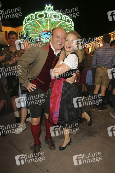 Wolfram Kons mit Ehefrau Alexa Apermann in der Käfer Wiesn Schänke auf dem Oktoberfest 2019. München, 27.09.2019