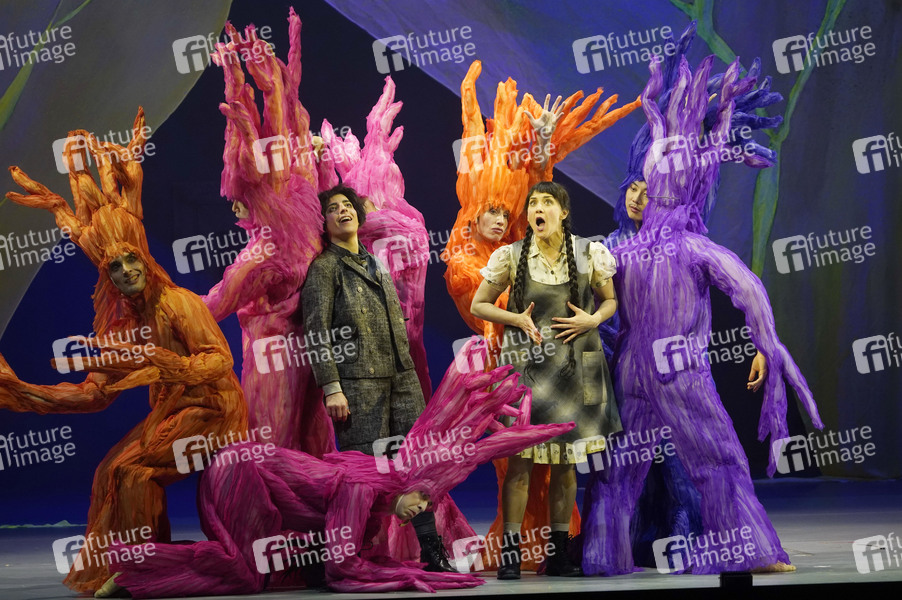 Susan Zarrabi und Alma Sade bei der Fotoprobe der Oper 'Hänsel und Gretel' von Engelbert Humperdinck nach dem Märchen der Brüder Grimm unter der Regie von Dagmar Manzel in der Komischen Oper Berlin im Schillertheater. Berlin, 22.01.2025