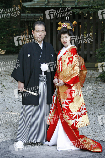 Meiji-jingu, Bräutigam, Braut, Brautpaar, Hochzeit, Kimono, Geisha