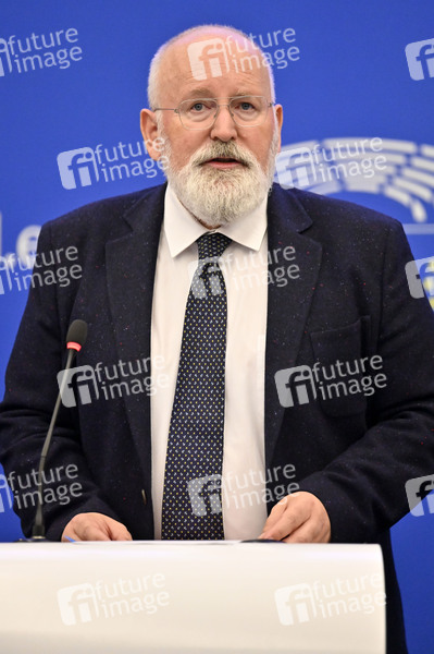Frans Timmermans bei einer Pressekonferenz zu erneuerbaren Energien im Europäischen Parlament. Straßburg, 14.09.2022
