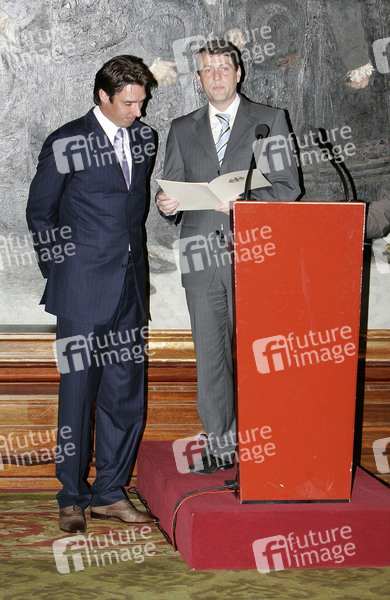 Verleihung vom Bundesverdienstkreuz an Michael Stich während des Senatsempfangs zur Ausstellung der Michael Stich Stiftung im Hamburger Rathaus