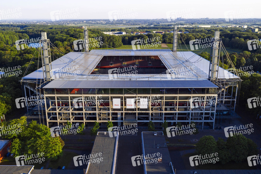 Stadion, Kölner Stadion, Fußballstadion, 1. FC Köln, Heimspiel, Rhein Energie Stadion, RES, Hexenkessel, Spielplan, Derby, Spielabsage, Fußballpause, Spiel-Absage, Fußball-Shutdown, Bundesliga-Abbruch, Liga-Abbruch, Ausfall, Spiel-Ausfall, Bundesliga-Ausfall, Risiko, Risikogruppe, Maßnahmen gegen Corona, Corona-Saison, Corona-Maßnahmen, Absage von Bundesligaspielen, Spieltag, 1. Fußball Bundesliga, Deutsche Bundesliga, Sport, Verbot von Großveranstaltungen, Coronakrise, Corona-Krise, Virus, Viren, Corona, Sars-CoV-2, Covid-19, Covid19, Coronavirus, Coronaviren, Corona-Virus, Corona-Viren, Ansteckung, Ansteckungsgefahr, Eventverbot, Kontaktverbot, Mindestabstand, Social Distancing, Epidemie, Pandemie, Ansteckungsangst, Vorbeugung, Prävention, schützen, Schutz, Risikobewertungen, Maßnahmen, Profisport, Coronamaßnahmen, infizierte Spieler, Spielbetrieb, Bundesliga, Bundesliga-Absage, Saison-Ende, Saison-Abbruch, Geisterspiel, Geisterspiele, Fussball, Virenschutz, Infektionsgefahr beim Sport, DFL, FIFA, Symbolbild, Symbolfoto, Themenbild, Themenfoto, Luftbild, Luftfoto