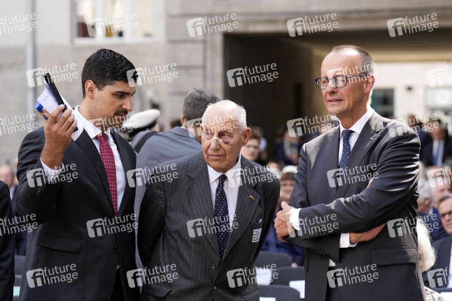 Berthold Maria Schenk Graf von Stauffenberg und Friedrich Merz bei der Gedenkveranstaltung zum 80. Jahrestag des Aufstands gegen Nationalsozialistische Gewaltherrschaft mit Kranzniederlegung auf dem Ehrenhof des Bendlerblocks.Berlin, 20.07.2024