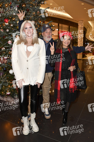 Sarah Knappik, Frank Matthee und Gitta Saxx beim Promi Charity Event zugunsten des strassenfeger e. V. in der Mall of Berlin. Berlin, 06.12.2022