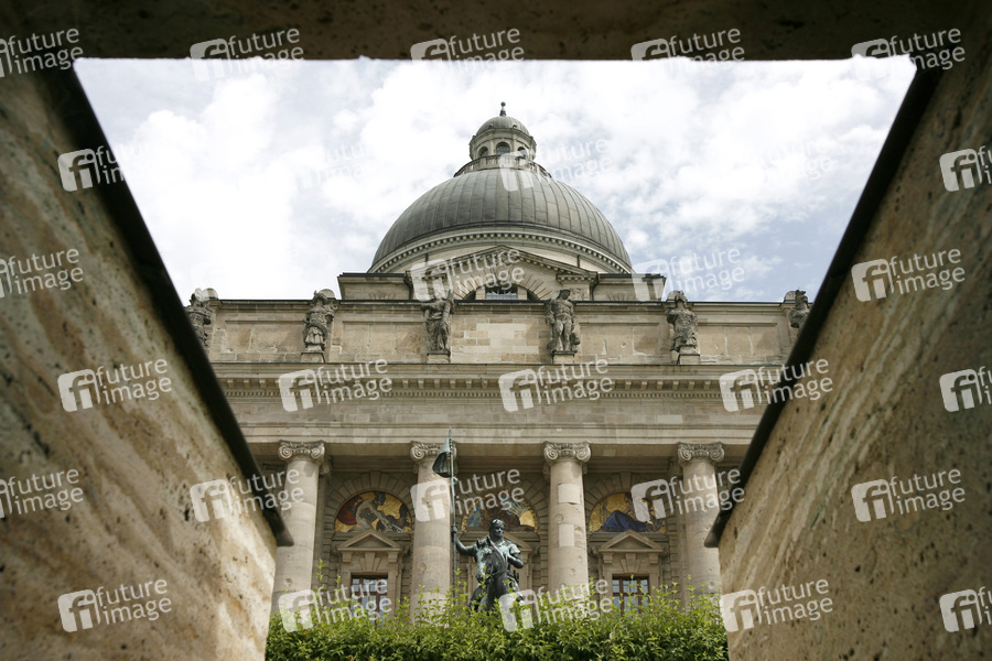 ehemaliges Bayerisches Armeemuseum, der 1982 sanierte Kuppelbau des alten Armeemuseums wurde als Zentralbau der Staatskanzlei beibehalten, 1989-1993 Neubau der Staatskanzlei, Architekten Diethard J. Siegert und Reto Gansser