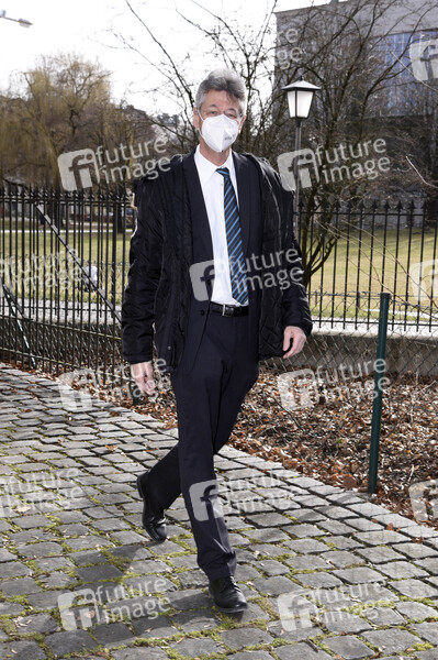 Michael Piazolo bei der Ankunft zur Pressekonferenz zu den aktuellen Beratungen zur Corona-Pandemie im Prinz-Carl-Palais. München, 23.02.2021