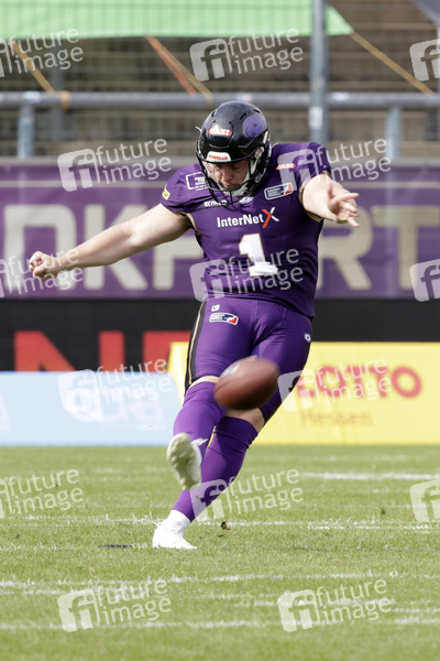 Ryan Rimmler (Frankfurt Galaxy K) beim American Football-Spiel Frankfurt Galaxy gegen Hamburg Sea Devils in der PSD Bank Arena. Frankfurt am Main, 30.06.2024