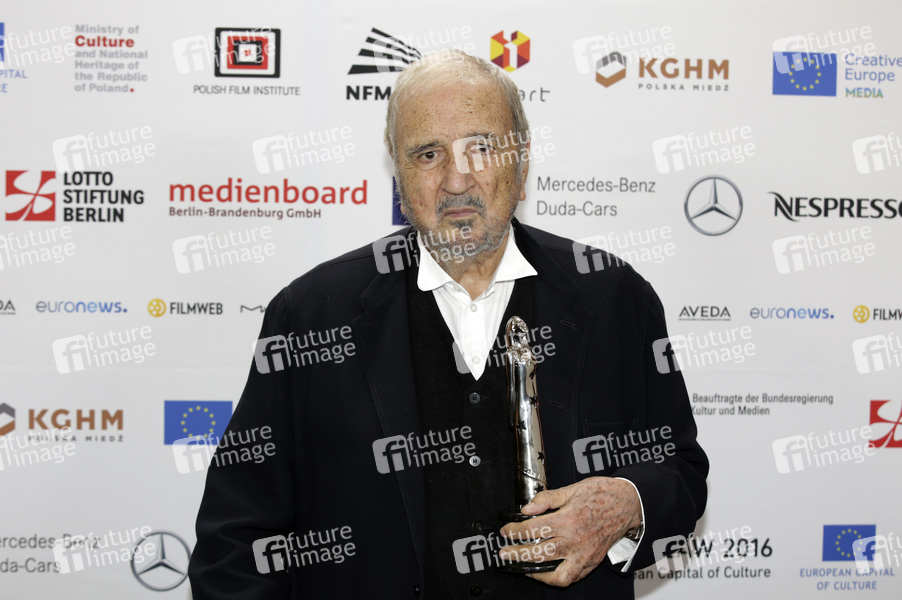 Jean-Claude Carriere mit dem Preis für sein Lebenswerk bei der Verleihung vom 29. Europäischen Filmpreis 2016 / 29th European Film Awards 2016 im Nationalen Forum für Musik. Breslau, 10.12.2016