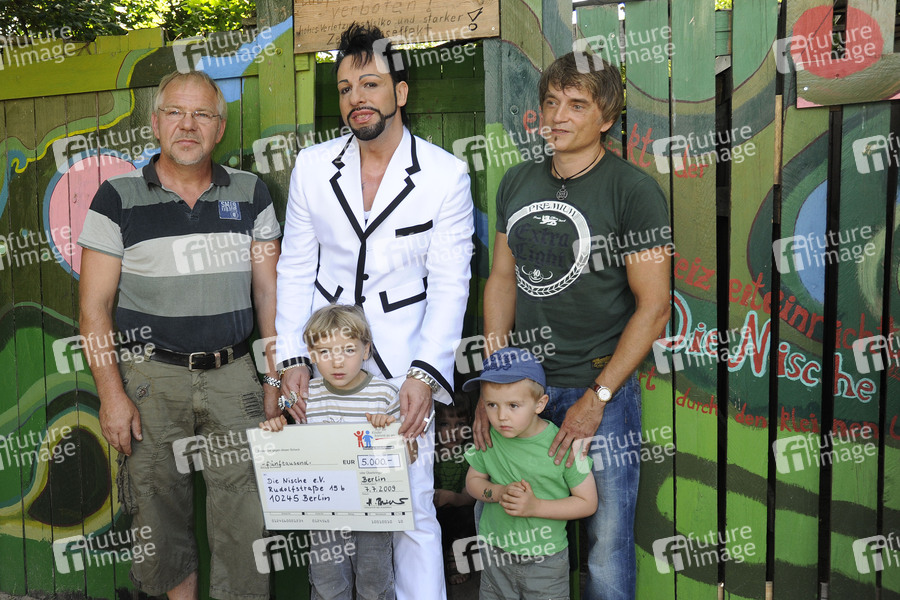 Harald Glööckler, bester Gastgeber der TV Sendung 'Das Perfekte Promi Dinner', übergibt seinen Gewinn von 5000 Euro an den Verein 'Die Nische' vom Deutschen Kinderhilfswerk e.V. Berlin