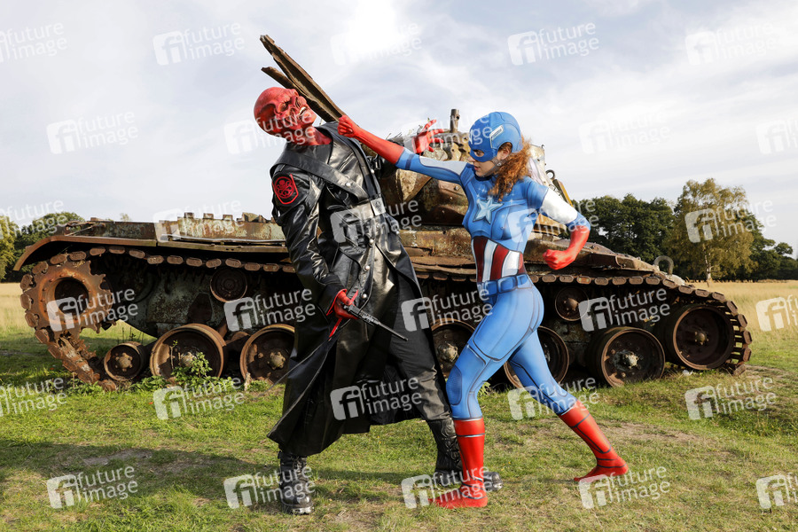 GEEK ART - Bodypainting and Transformaking: Captain America vs. Red Skull Photoshooting mit Lena und Patrick auf einem Truppenübungsplatz. Langenhagen, 20.09.2020 - Ein Projekt des Fotografen Tschiponnique Skupin und des Bodypainters und Transformakers Enrico Lein