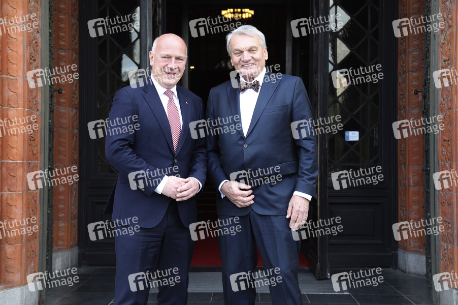 Kai Wegner und Bohuslav Svoboda bei der Eintagung des Oberbürgermeisters von Prag in des Goldene Buch von Berlin im Roten Rathaus. Berlin, 11.06.2025