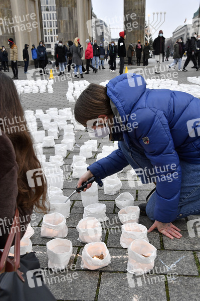 Fridays for Future Lichteraktion unter dem Motto FightFor1Point5 am Brandenburger Tor. Berlin, 11.12.2020