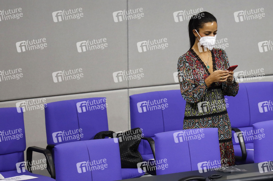 Sawsan Chebli bei der Rede von UN-Generalsekretär Guterres anlässlich 75 Jahre Vereinte Nationen im Plenum im Reichstagsgebäude. Berlin, 18.12.2020