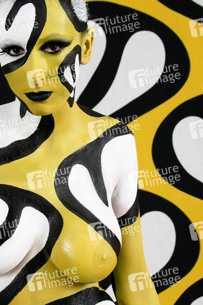 Bodypainting, Stoffdesign Anna Efverlund, Erotik, Frau, nackt, drinnen, weiblich, Muster, Chamäleon, erotic, woman, nude, indoor, female, chameleon