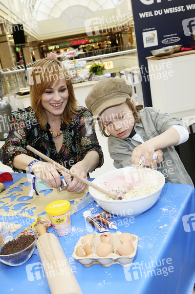 Dorkas Kiefer mit Sohn Sam beim Promi-Osterbacken zugunsten der Tribute to Bambi Stiftung im Alstertal-Einkaufszentrum. Hamburg, 28.03.2019