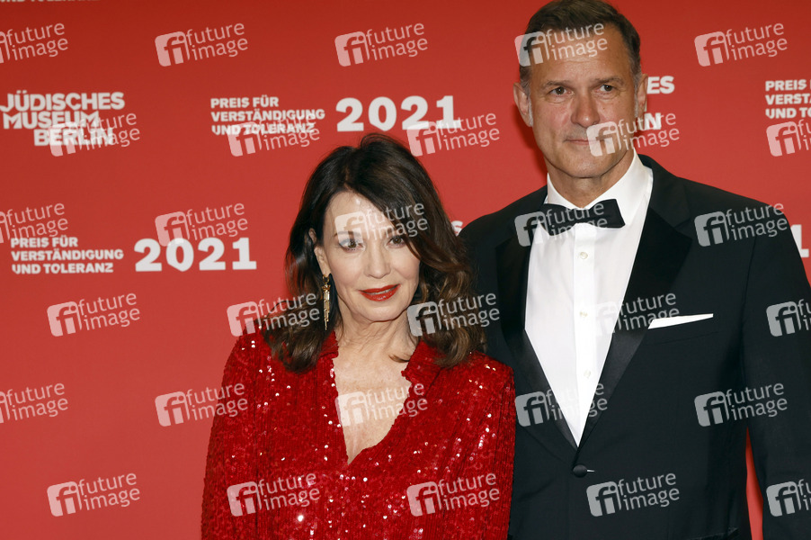 Iris Berben mit Partner Heiko Kiesow bei der Verleihung des 'Preises für Verständigung und Toleranz' im Glashof des Jüdischen Museums. Berlin, 13.11.2021