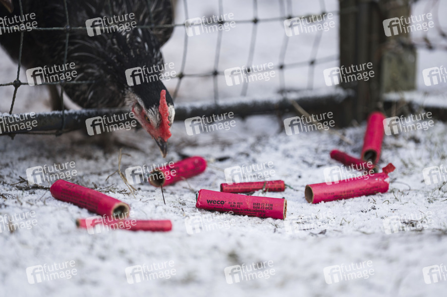 Neujahrsnacht, Silvester, Silvesternacht, Jahreswechsel, Tradition, Feuerwerk, Feinstaub, Feinstaubwerte, Unweltverschmutzung, CO2, Höhenfeuerwerk, Feuerwerker, Pyrotechnik, Großfeuerwerk, Raketen, Silvesterraketen, Böller, Feuerwerk-Show, Feuerwerk-Spektakel, Nachthimmel, Feuerwerkskörper, Frohes Neues Jahr, Feuerwerksbatterie, Feuerwerkskörper, Knallköprer, Luftverschmutzung, Pyrotechnik, Silvesterböller, Silvesterfeuerwerk, Müll, Müllbeseitigung, Müllabfuhr, Straßenreinigung, Stadtreinigung, Sauberkeit, Feuerwerksreste, Abfallbehandlung, Hühner, Symbolfoto, Symbolbild