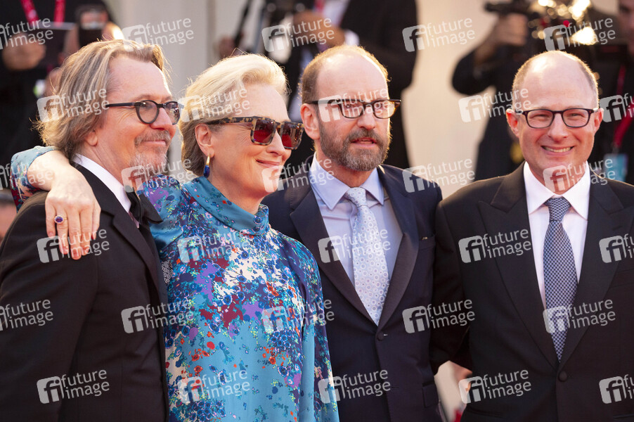 Gary Oldman, Meryl Streep, Steven Soderbergh und Jake Bernstein bei der Premiere von 'The Laundromat / Die Geldwäscherei' auf der Biennale di Venezia 2019 / 76. Internationale Filmfestspiele von Venedig im Palazzo del Cinema. Venedig, 01.09.2019