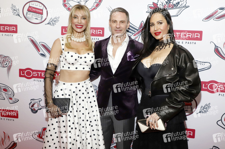 Annika Gassner, John Schlüter und Rafaella Nussbaum bei der Eröffnung der 200. Filiale von L'Osteria in Othmarschens Marzipanfabrik. Hamburg, 20.02.2025