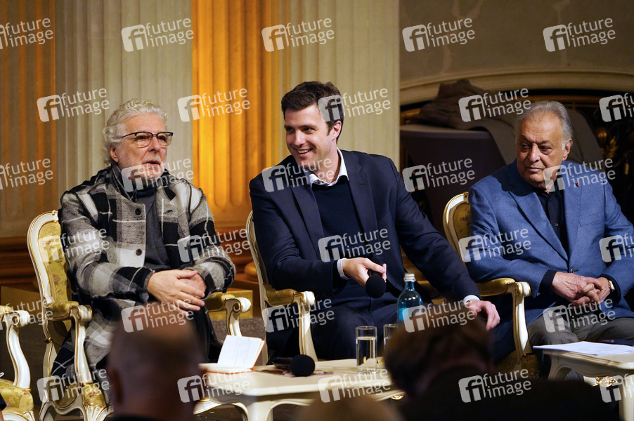 Andre Heller, Matthias Schulz und Zubin Mehta beim Pressegespräch zur Neuproduktion von 'Der Rosenkavalier' in der Staatsoper Unter den Linden. Berlin, 28.01.2020