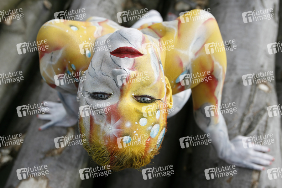 Model-Shooting für das Cover des SOLsnap Magazins zum Thema Bodypainting. Künstler: Jörg Düsterwald. Leser können ihr Foto auf die Website des Magazins einstellen und sich damit zur Wahl des Cover-Model des Monats stellen.
