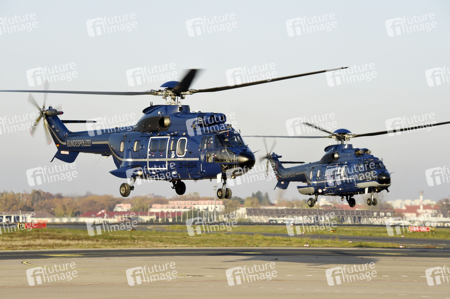 Die Hubschrauber der Bundespolizei fliegen eine Ehrenrunde zum Abschied. Mit der Inbetriebnahme des Flughafens Berlin Brandenburg Willy Brandt (BER) wird der gesamte Luftverkehr der Hauptstadtregion an einem Standort konzentriert. Der Flughafen Tegel, kurz TXL, schließt am 8. November. 60 Jahre nach dem ersten Linienflug von Air France wird am 8. November ein Flugzeug der französischen Airline zum allerletzten Mal von dem Flughafen im Nordosten Berlins starten und Adieu sagen. Berlin, 08.11.2020
