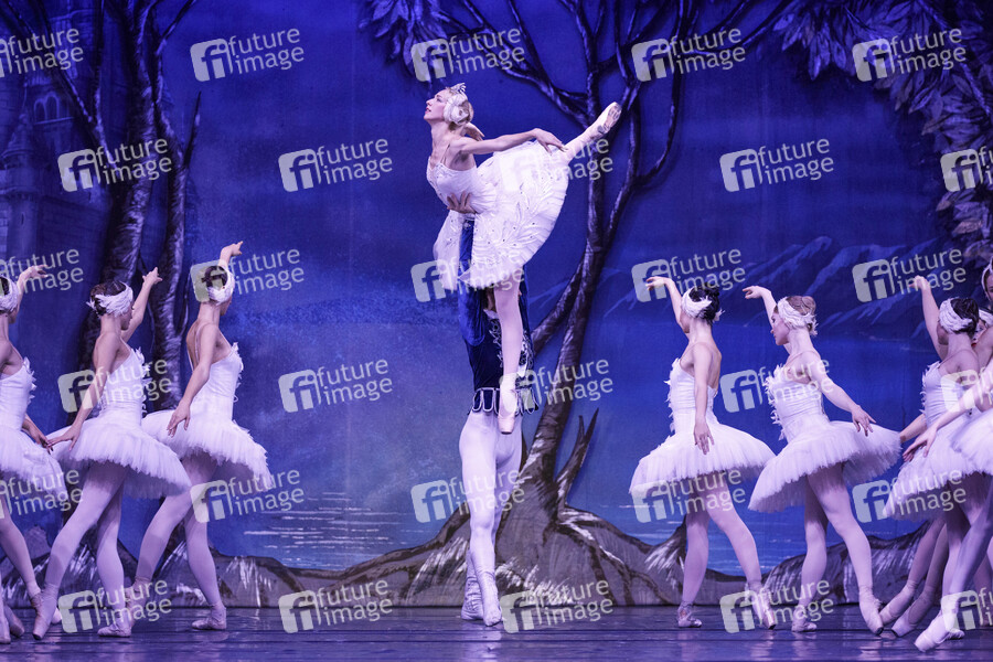 Ballett, Tanz, Ballettensemble, Körperbeherrschung, Körperspannung, Athletik, Körperkunst, Ballettkompanie, Schwanensee, Choreografie, Schwäne, Schwan, Tschaikowski, Schwanenprinzessin, Märchen, Märchenmotiv, Parabel, Fabel, Zauber, Fluch, Prinzessin, Traumprinz, Erlösung, Königin, Odile, schwarzer Schwan, weißer Schwan, Mythos, Libretto, Romantik, Zeitgenössischer Tanz, Tanztheater, Corps de ballet, Bühnenwerk, Aufführung, Stück, Bühne, Hofgesellschaft, Hofstaat, Operette, Ballerina, Primaballerina, Kultur, Kulturerbe, Nationalballett, Staatsballett, russische Kultur, Symbolbild, Symbolfoto