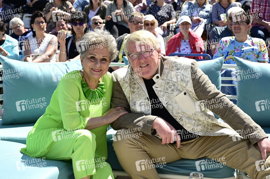 Dagmar Frederic und Bernhard Knuth bei der Sommergarten-Show auf der Freilichtbühne im Stadtpark. Beelitz, 12.05.2024