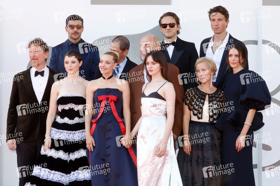 Scott Handy, Christopher Abbott, Thomasin McKenzie, Amanda Seyfried, Tim Blake Nelson, David Cale, Viola Prettejohn, Lewis Pullman, Maria Sand, Jamie Bogyo und Stacy Martin bei der Premiere des Kinofilms 'The Testament of Ann Lee' auf der Biennale di Venezia 2025 / 82. Internationale Filmfestspiele von Venedig im Palazzo del Cinema. Venedig, 01.09.2025