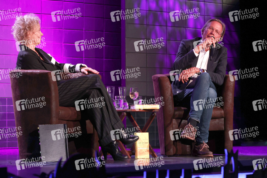 Katja Riemann und Harald Welzer bei der lit.Cologne 2024 Veranstaltung 'Die Zeit bleibt nicht stehen, auch hinter Zäunen nicht, auch in Zeiten der Flucht nicht' in der Volksbühne am Rudolfplatz. Köln, 13.03.2024