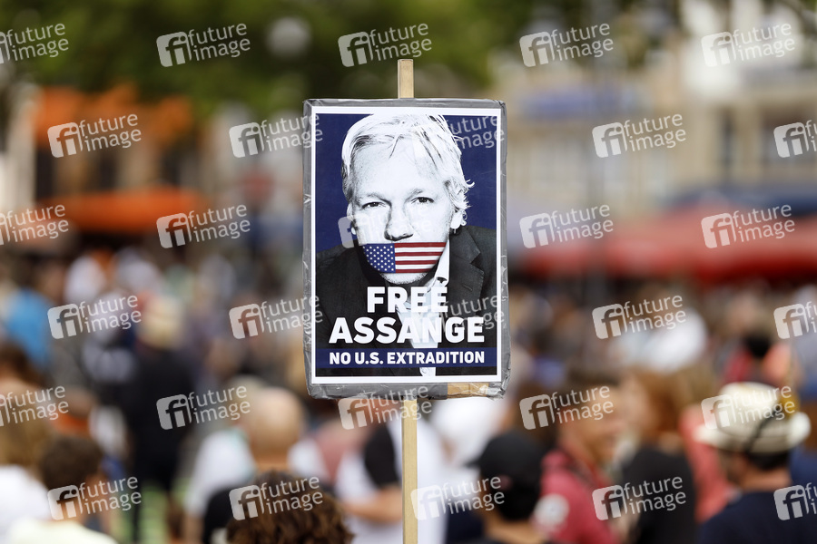 Julian Assange, Wikileaks, Podesta-Mails, Clinton-Leak, Auslieferungshaft, Auslieferung, Whistleblower, Whistleblowing, Leaks, Haft, politischer Gefangener, Demonstration, Rede, Corona, Corona-Maßnahmen, Regierungskritik, Regierungskritiker, Protest, Maskenpflicht, Freidenken, Anti-Corona-Demo, Symbolbild, Symbolfoto