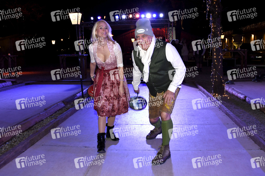 Axel Munz mit Freundin Yvonne Marwan bei der 13. Angermaier Eisstock-WM in Tracht auf den Eisstockbahnen im Park Cafe. München, 16.01.2020