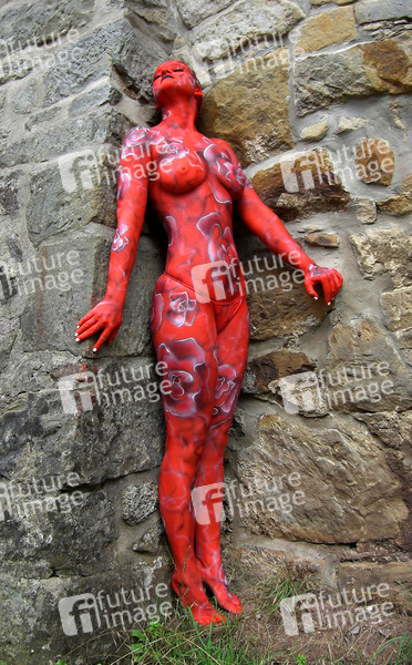 Erotik, Frau, nackt, draußen, weiblich, Rose, rot, Mauer, woman, nude, outdoor, female, erotic, rose, red, wall