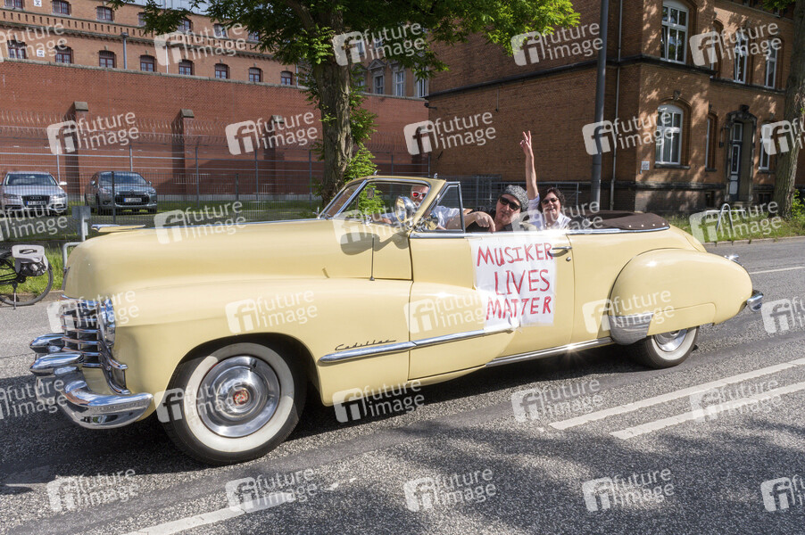 Wayne Morris beim Autokorso unter dem Motto 'EVENTuell nie wieder' der vom Corona-Lockdown betroffenen Veranstaltungsbranche in der Sternschanze. Hamburg, 15.06.2020