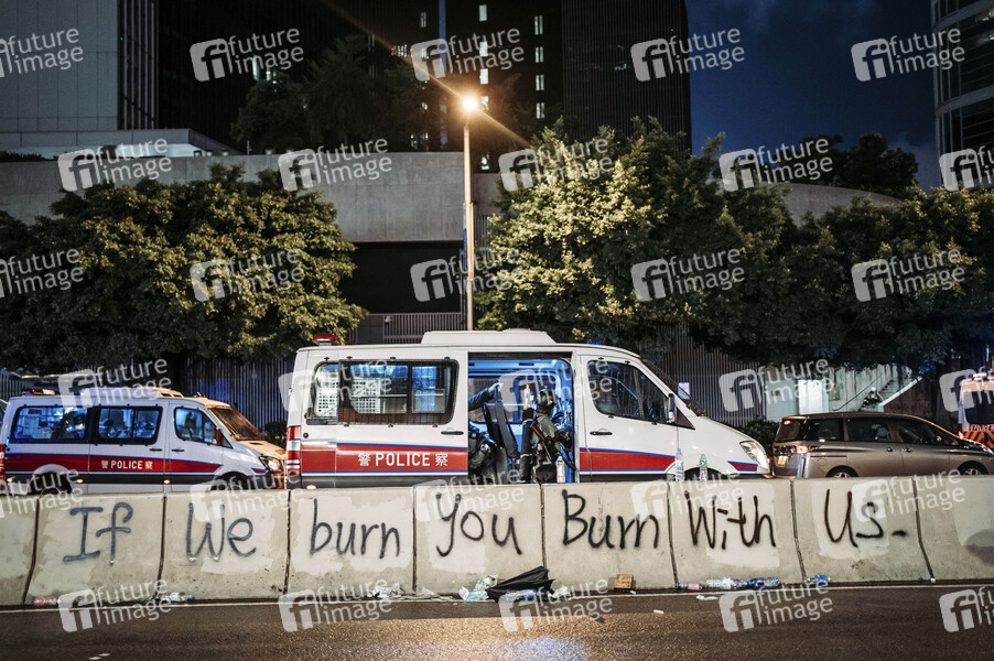 Protest gegen Regierung, Hong Kong, Politik, Aktion, Demonstration, Demonstranten, Unruhen, Straßenkämpfe, Wasserwerfer, Tränengas, Demonstrationsverbot Polizei