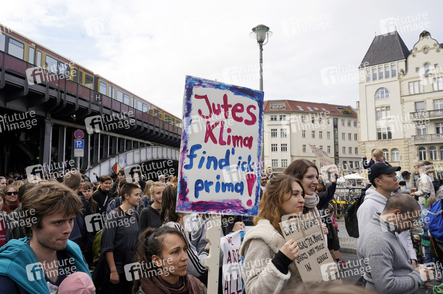 Demonstranten bei der 'Fridays for Future' Demonstration im Rahmen des weltweiten Klimastreiks auf der Friedrichstraße. Berlin, 20.09.2019