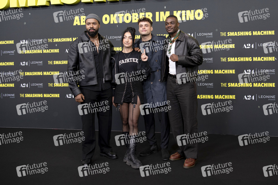 Barry Hammerschmidt, Eda Schmidt, Gast und Melo bei der Premiere des Kinofims 'The Smashing Machine' im Zoo Palast. Berlin, 22.09.2025