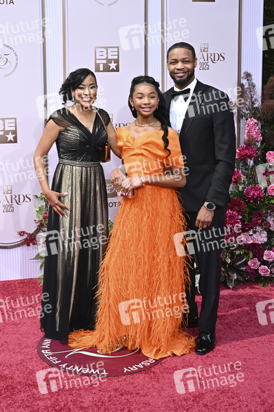Arlene Gordon-Hollingsworth, Graceyn Hollingsworth und Javoris Hollingsworth bei der Verleihung der 25. BET Awards 2025 im Peacock Theater. Los Angeles, 09.06.2025