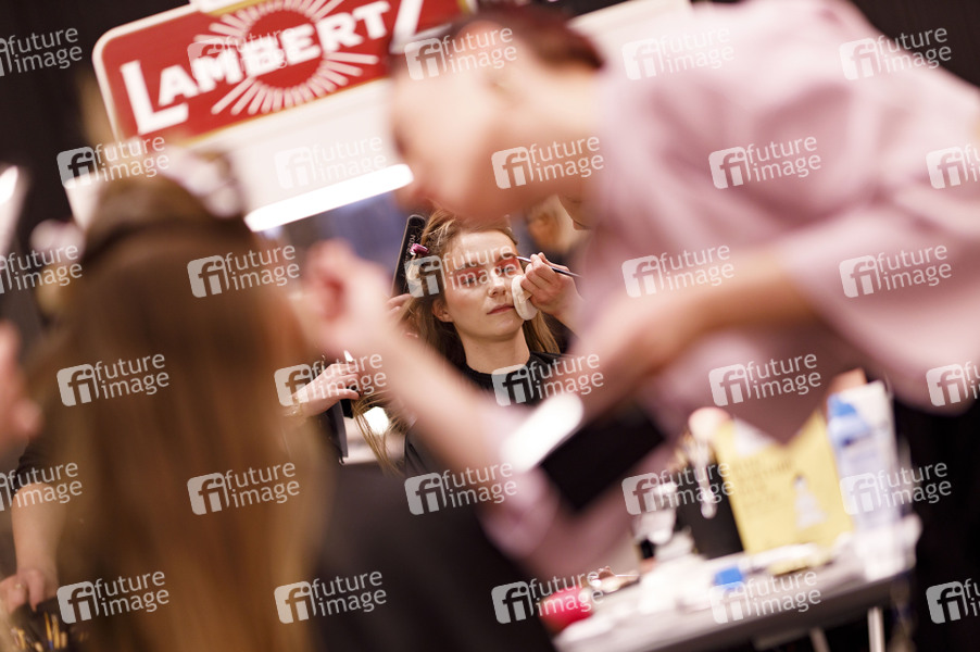 Models der Lambertz Monday Night 2020 werden geschminkt. Köln, 03.02.2020