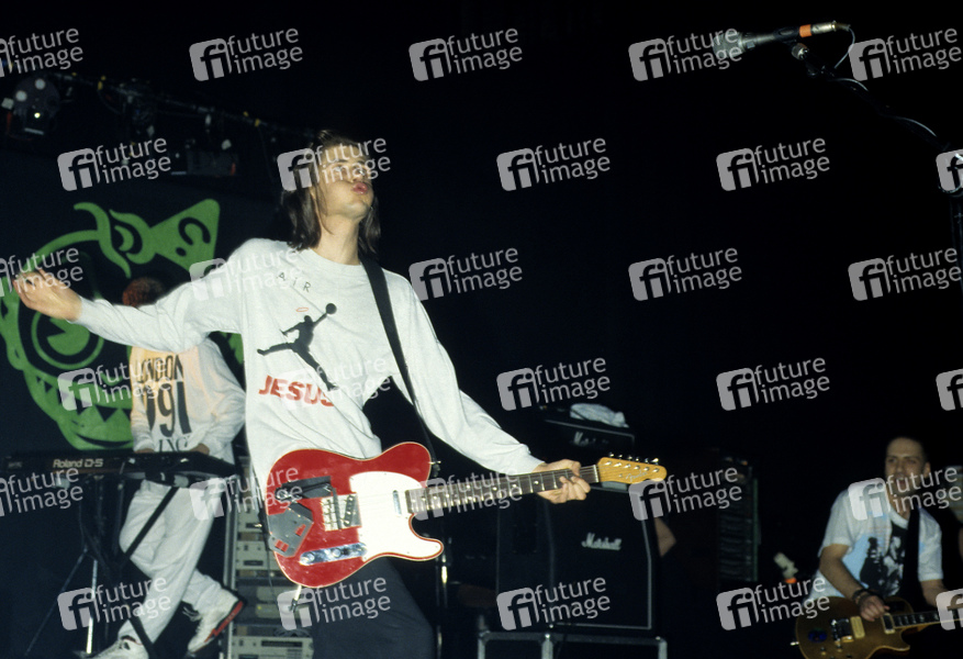 Iain Baker, Mike Edwards und Jerry De Borg von Jesus Jones live im Town & Country Club. London, 27.02.1991