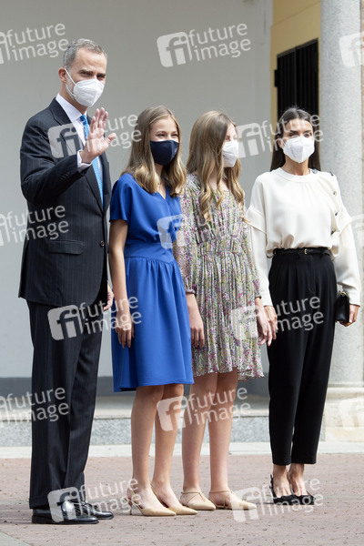 König Felipe von Spanien, Prinzessin Leonor von Spanien, Prinzessin Sofia von Spanien und Königin Letizia von Spanien bei der Konfirmation von Prinzessin Leonor in der Kirche Asuncion de Nuestra Senora im Stadtteil Aravaca. Madrid, 28.05.2021